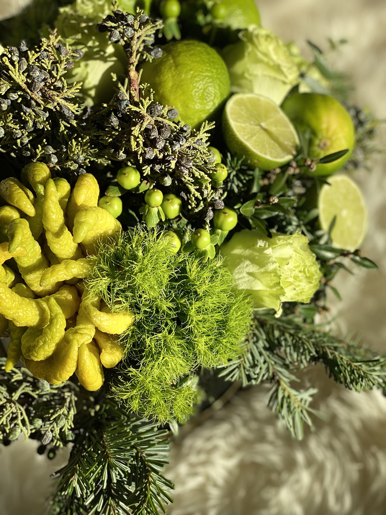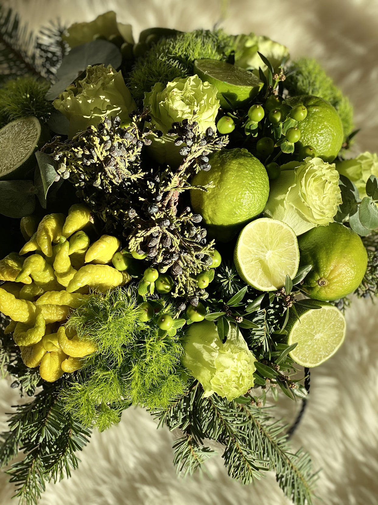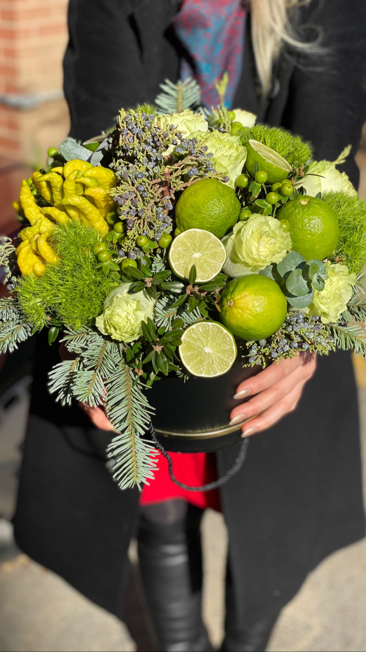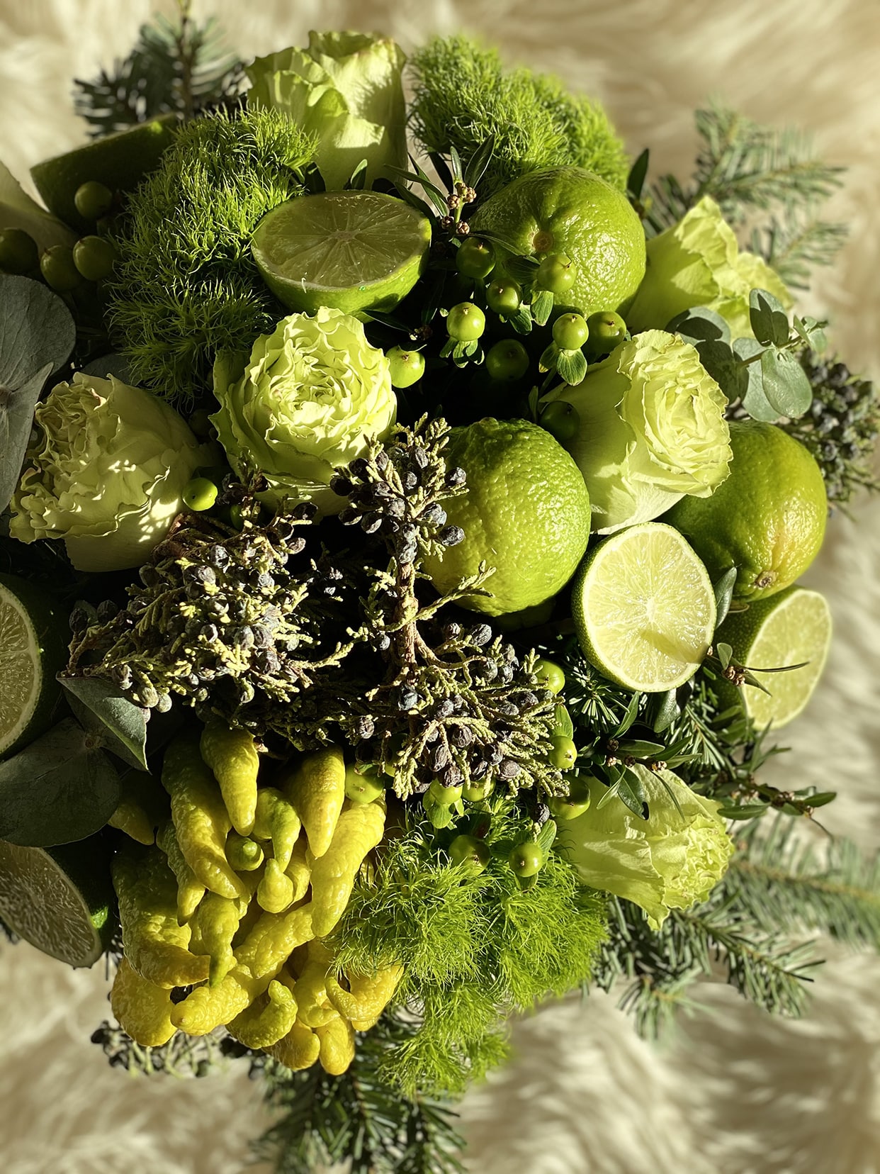 This arrangement would be a beautiful centerpiece on a dining room table, delivering a fresh lime aroma and a stunning display to satisfy our customers’ senses.