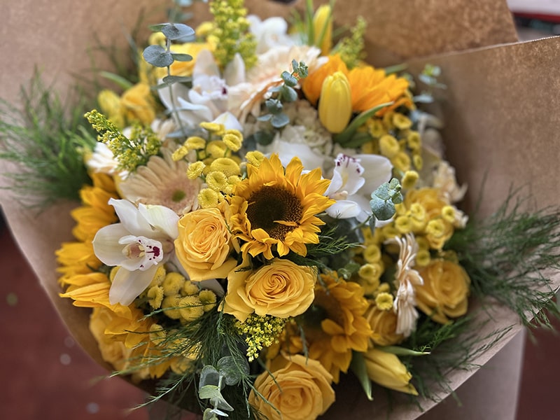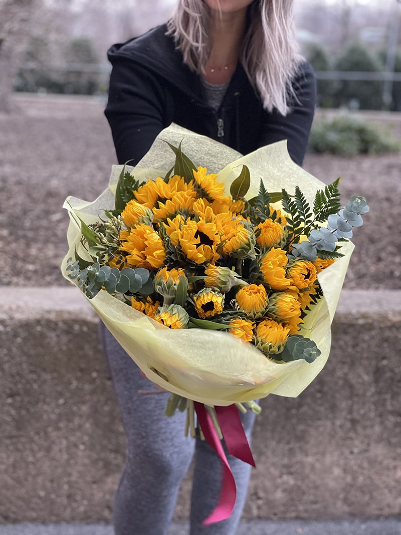 The highlight of this arrangement is the Sunflower, one of the most heart-warming flowers that is fitting for a dining table with friends. Bring more summer into your home with this arrangement.